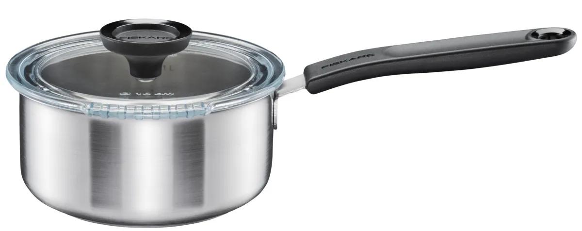 Unelte de grădină » FISKARS ustensile de bucătărie » Fiskars Cratiță cu capac, 1,5 L / 16 cm, oțel inoxidabil 1072315
