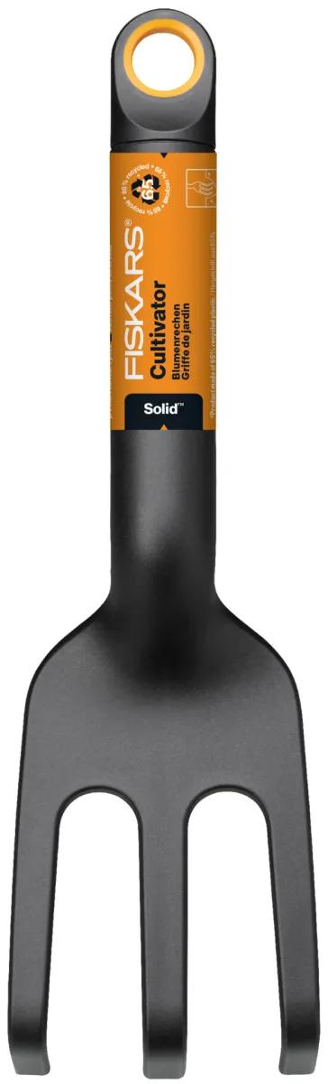 Cultivatorul Fiskars Solid™ este fabricat din 65% plastic reciclat cu fibre de sticlă pentru a spori rezistența. Vârfurile largi și curbate sunt ideale pentru afânarea solului compactat și îndepărtarea buruienilor din straturile de grădină. Rezistent la radiațiile UV. Mânerul ergonomic reduce oboseala mâinii. Orificiul practic pentru agățare permite depozitarea ușoară. Uneltele manuale de grădinărit Fiskars Solid sunt fabricate cu grijă, sunt reciclabile și de înaltă calitate, sunt rezistente și confortabile de utilizat.
