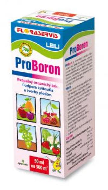 ProBoron este un complex de bor organic conceput pentru a promova înflorirea și formarea fructelor. Concentrația ridicată de bor organic lichid cu conținut de azot elimină în mod semnificativ deficitul de bor și previne tulburările fiziologice ale plantelor în caz de deficit de bor.