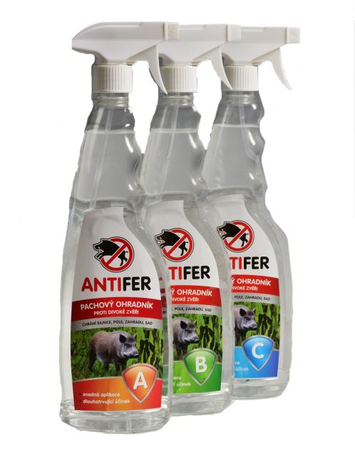 - produsul este eficient timp de 14-21 de zile, în funcție de vreme. După această perioadă, este recomandabil să se utilizeze o variantă diferită, din cele trei produse (Antifer roșu, Antifer verde, Antifer albastru) - fiecare conținând un raport diferit de acizi grași (miros diferit). Acest lucru va împiedica jocul să se obișnuiască cu un singur tip de miros.