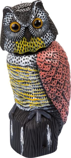 Un model realist de bufniță protejează grădina de păsări. Fabricată din plastic durabil, este atât funcțională, cât și decorativă, ideală pentru utilizare în exterior pentru un mediu curat și sigur.